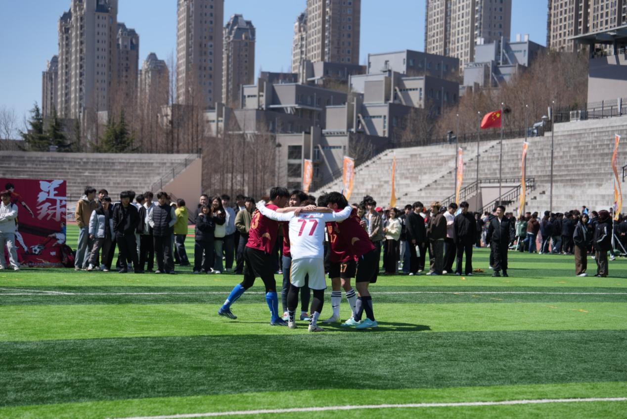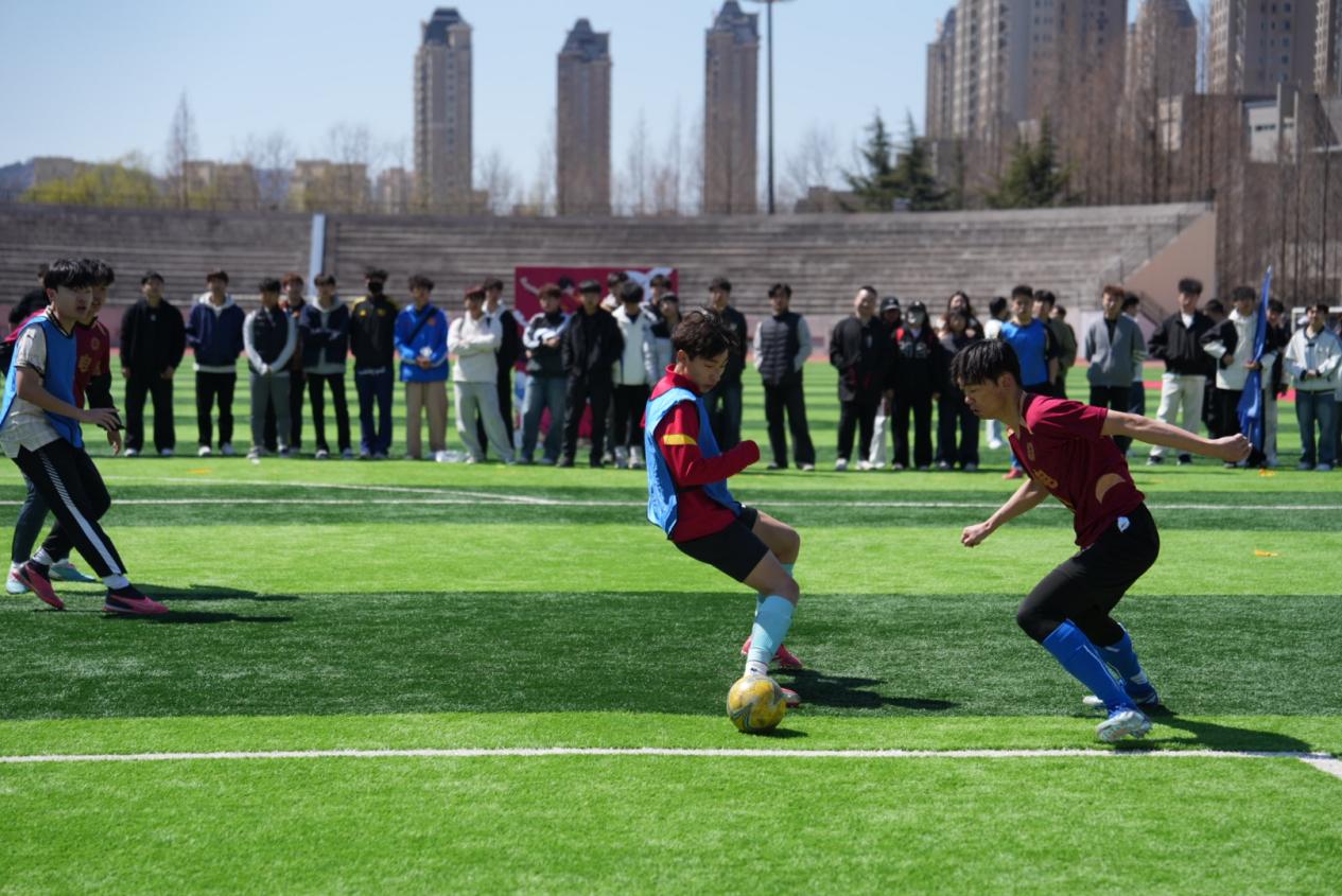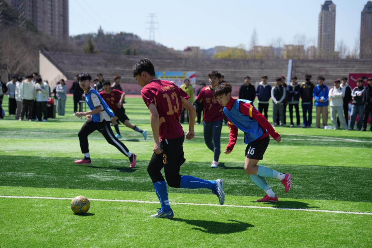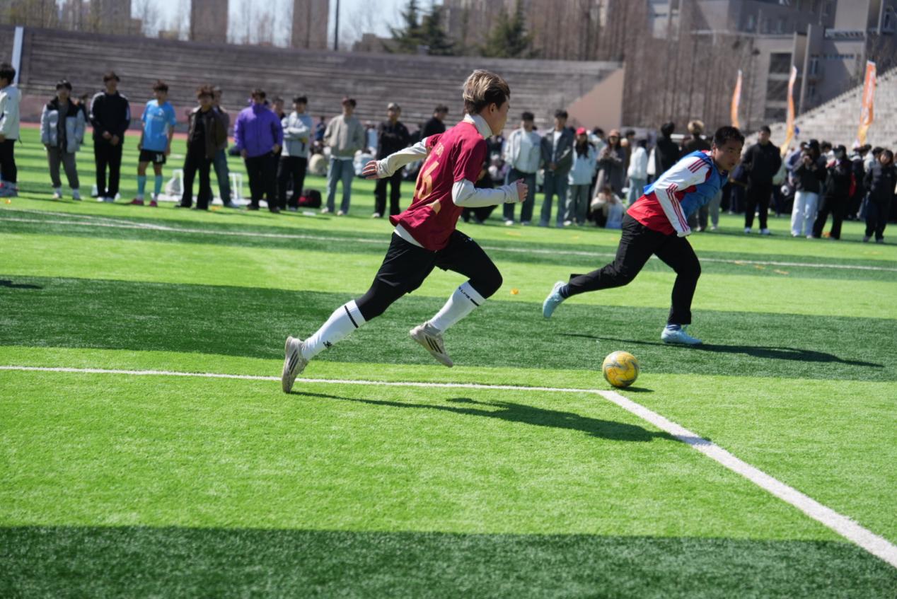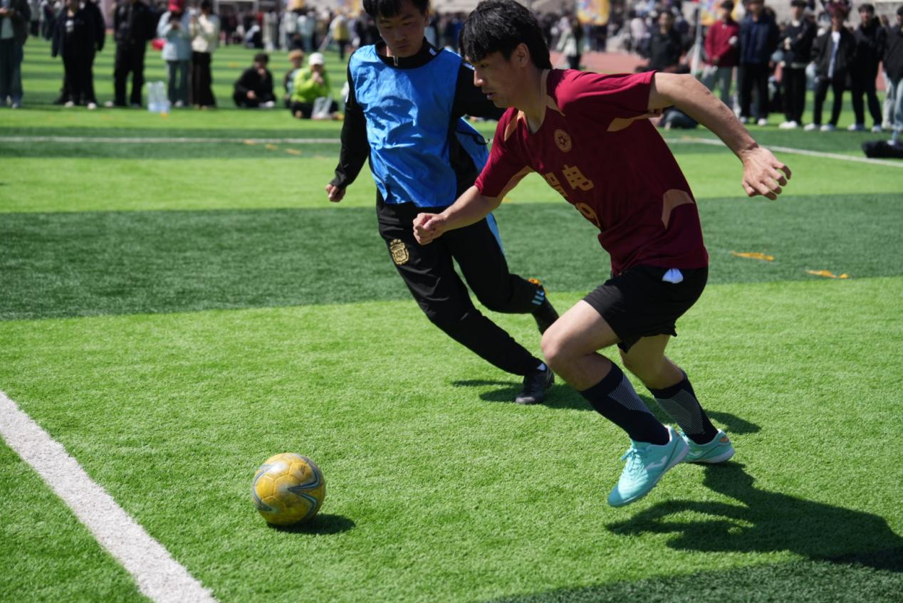 开幕式后,校团委书记王心磊为足球比赛揭幕战开球。恰逢世界杯年,本届体育文化活动月也将以足球为主赛事,让同学们在校园内也能一同感受足球魅力。人工智能学院和智能与电子工程学院的球员们在绿茵场上奋力奔跑,默契配合,每一次传球、每一次射门都尽显团队力量。